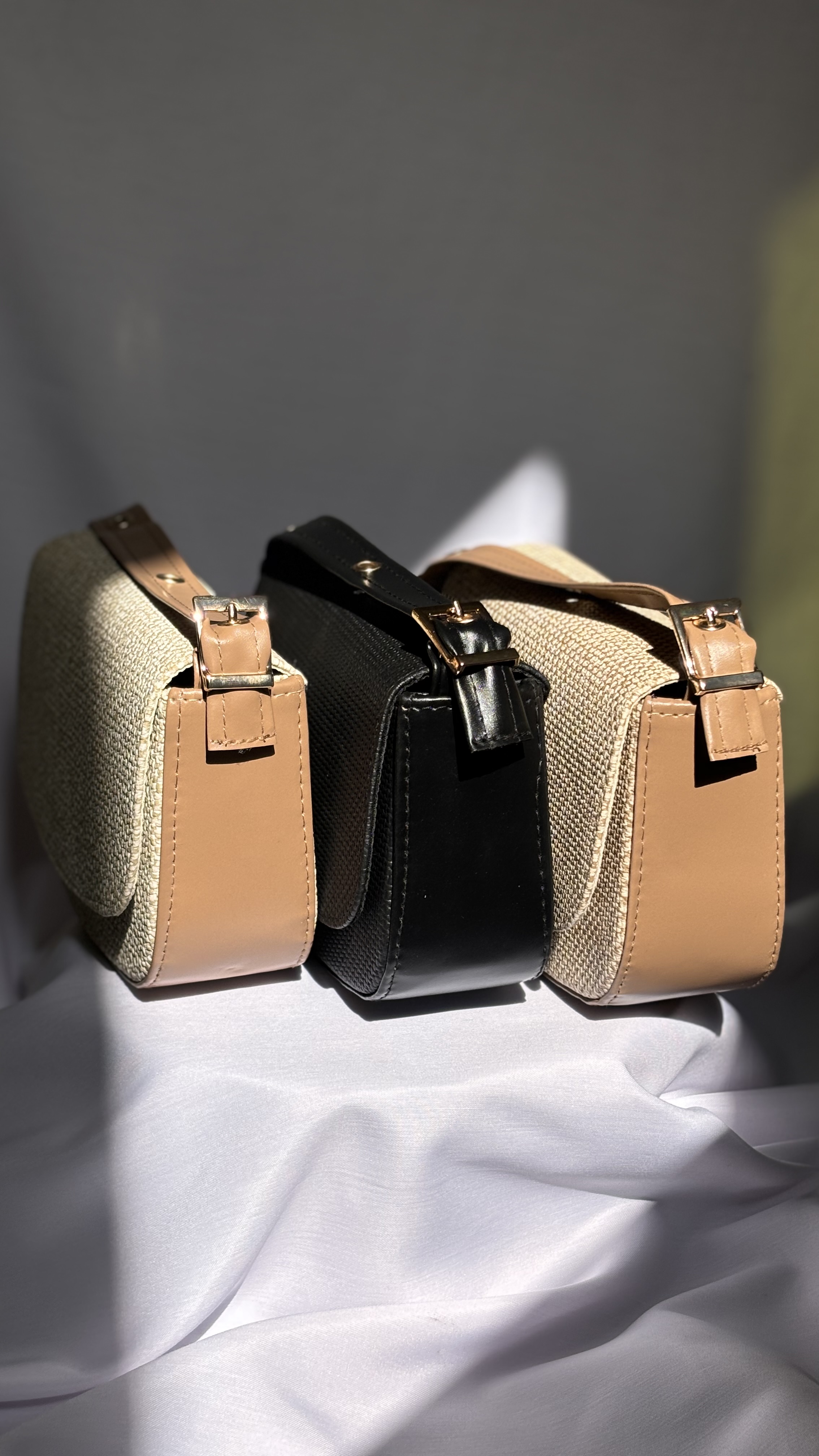 کیف زنانه جنس کناف و بند چرم مدل آیلا