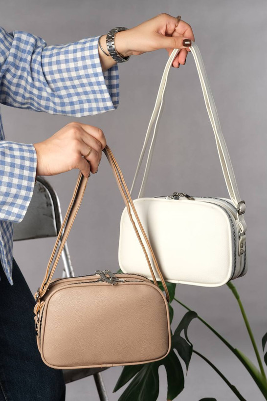 کیف زنانه چرمی دو زیپ بسیار جا دار با کیفیت و متریال عالی قابلیت تنظیم بند مناسب استفاده روزانه بسیار خوش دست
